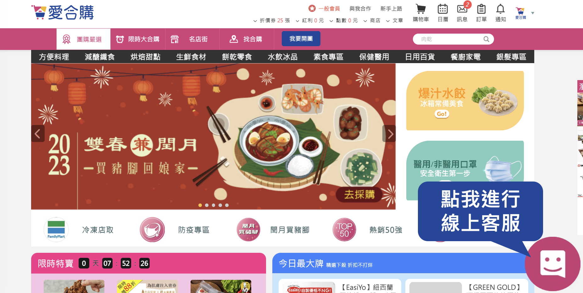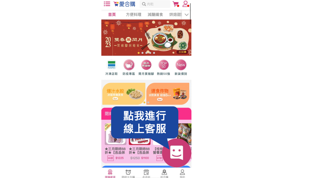 線上客服路徑:愛合購首頁 → 點擊右下方[粉色圈圈]傳訊息給客服