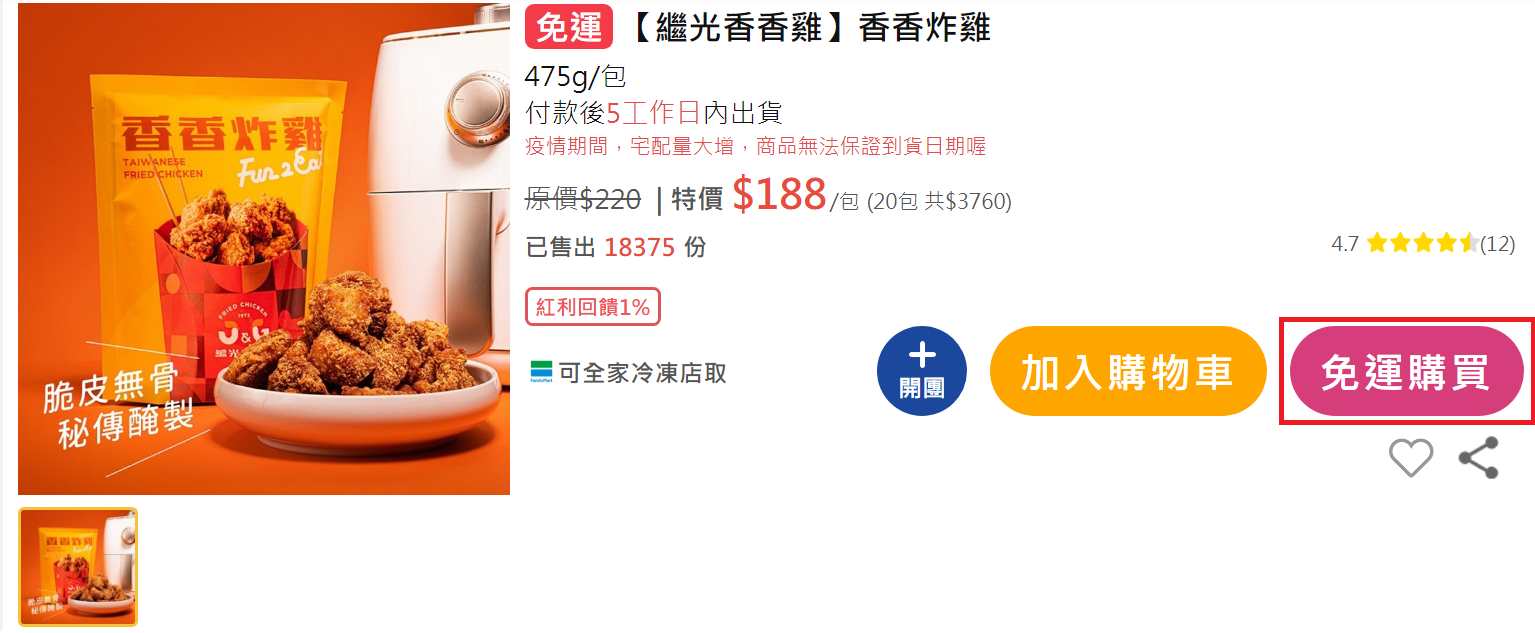 2. 跳轉到商品頁面後請點選【免運購買】。