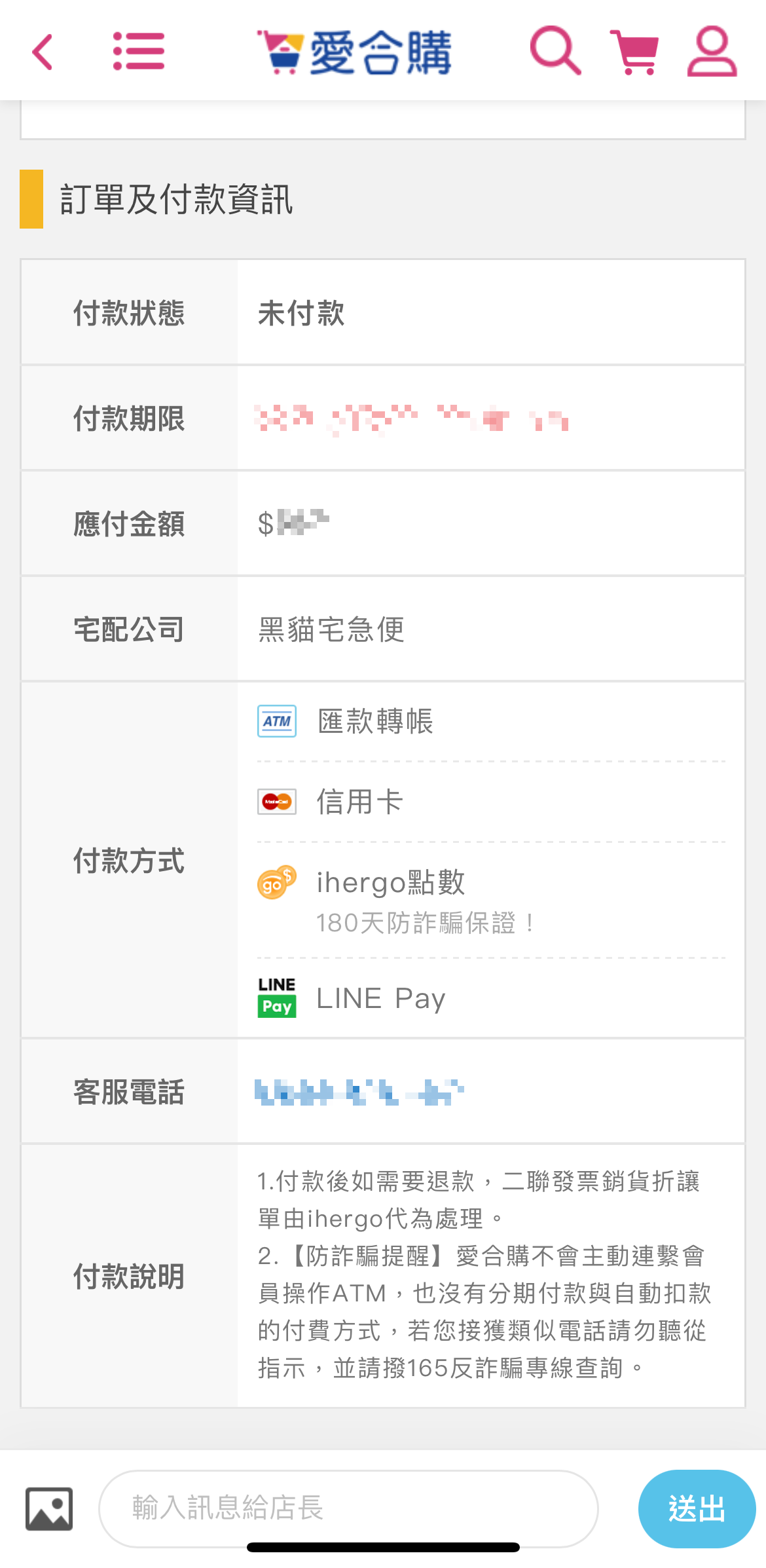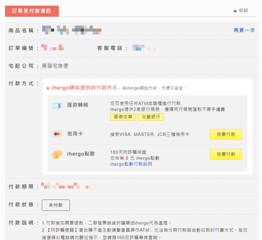 - 若訂單狀態一直維持【已付款】未轉【待出貨】,可能是付款金額有誤。