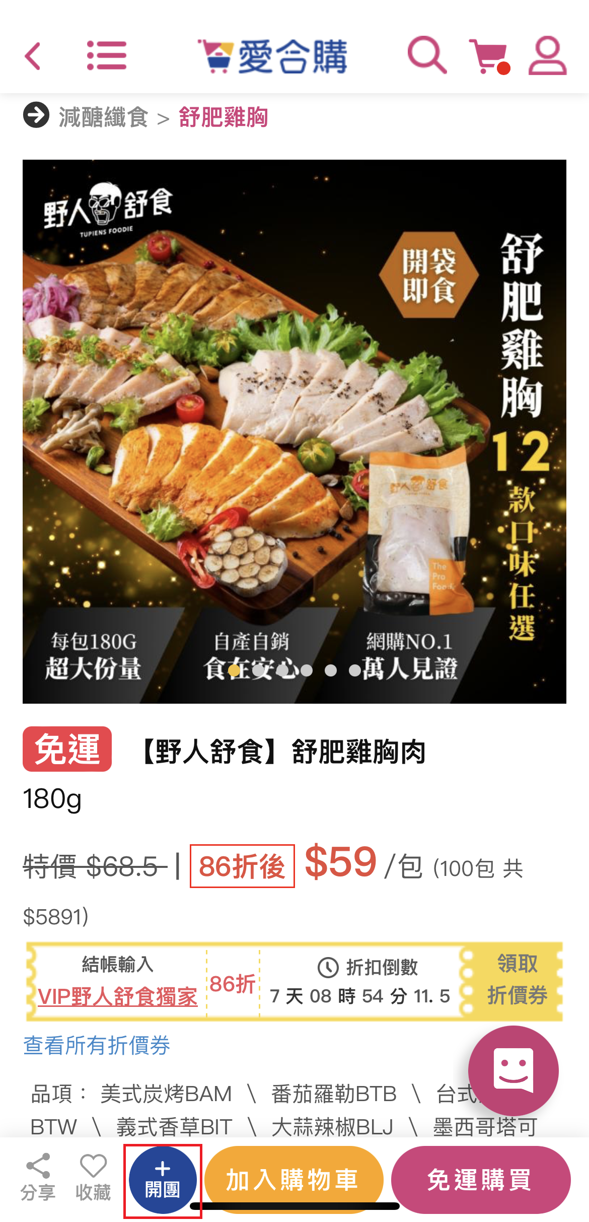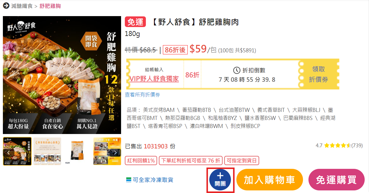 <開團>會顯示在商品頁的購買鍵<加入購物車>左側唷!